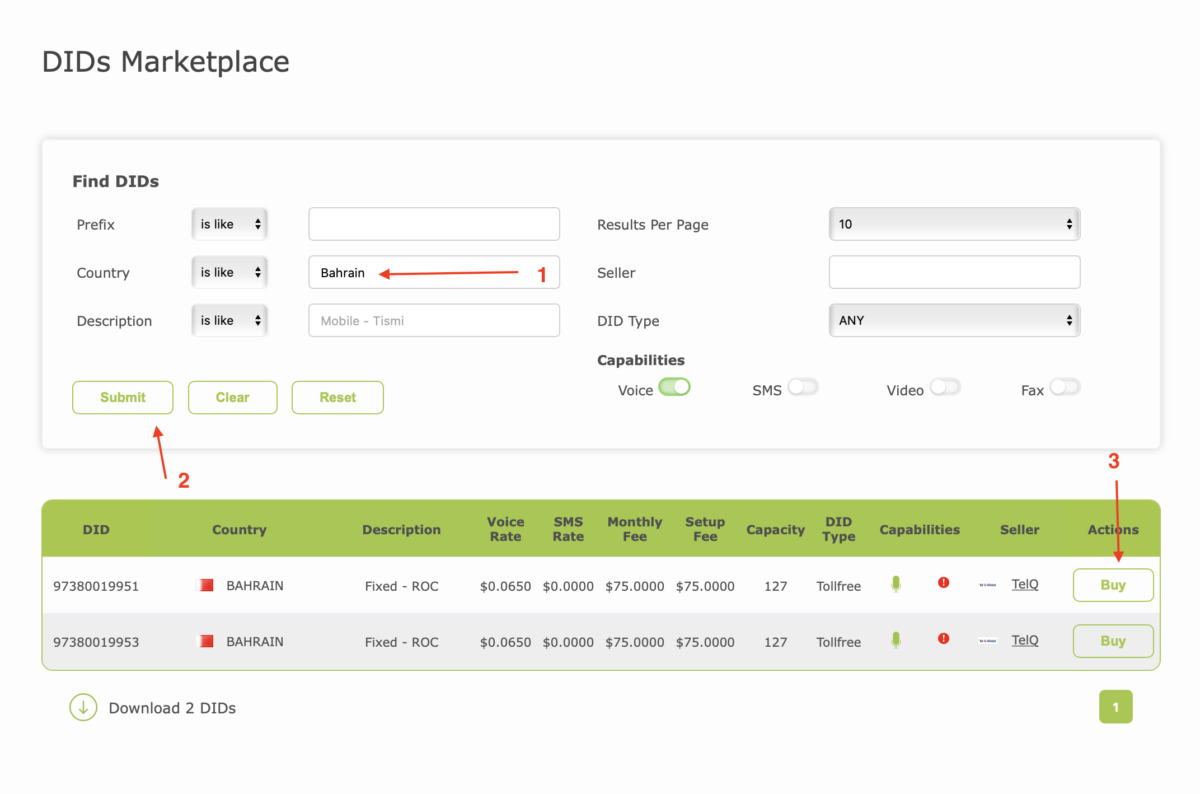 - Click Buy to purchase the Toll-Free number for Bahrain