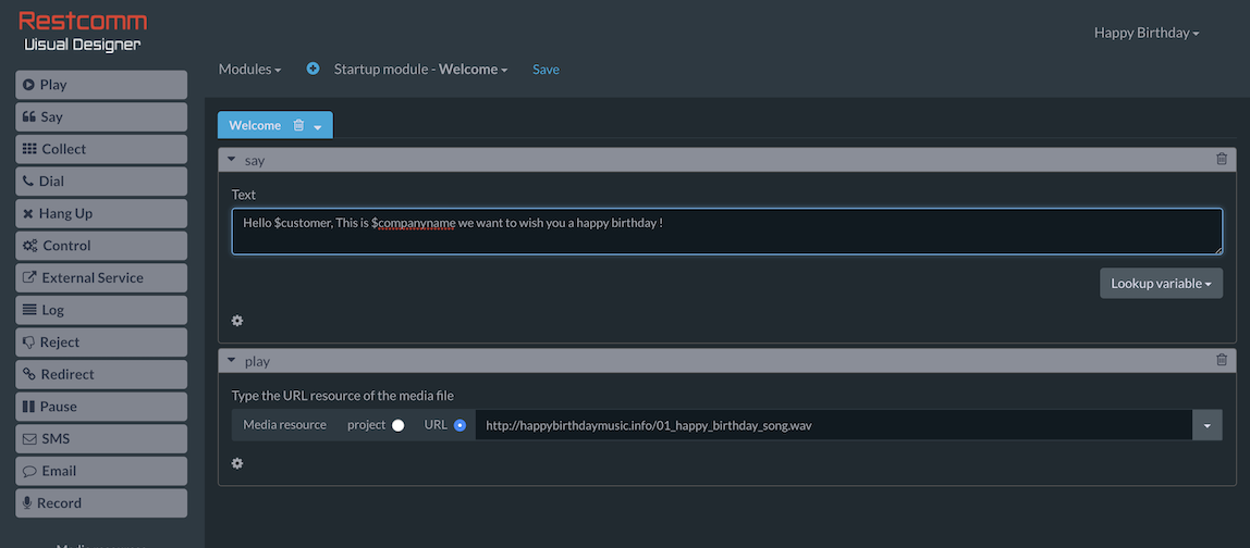 Build a responsive IVR without the hassle of writing code. Route your incoming calls to users, departments and mobile devices. Drag and drop from a palette of actions like Play, Dial, Collect, Say, SMS, Email and others support development of a wide range of applications.